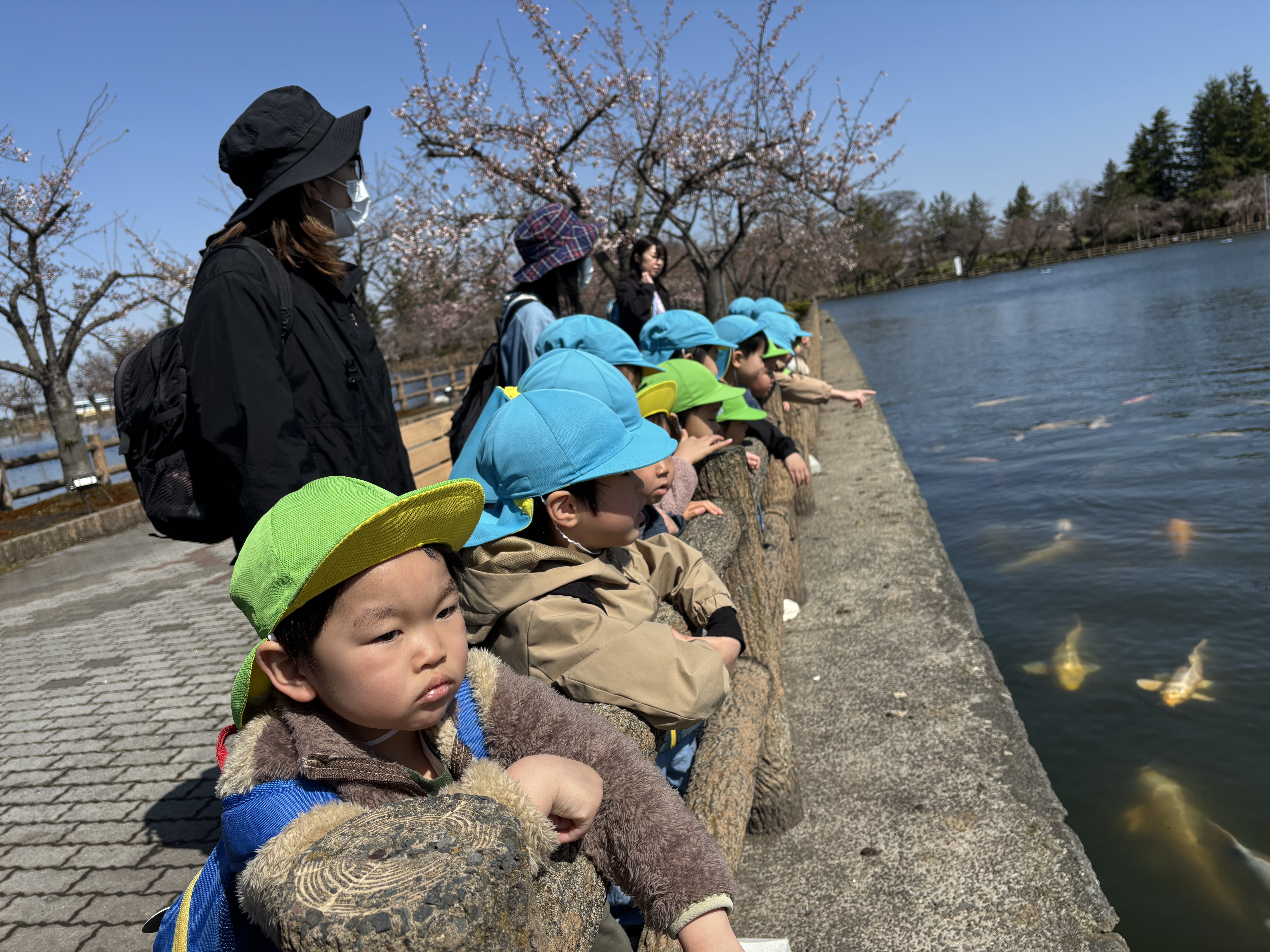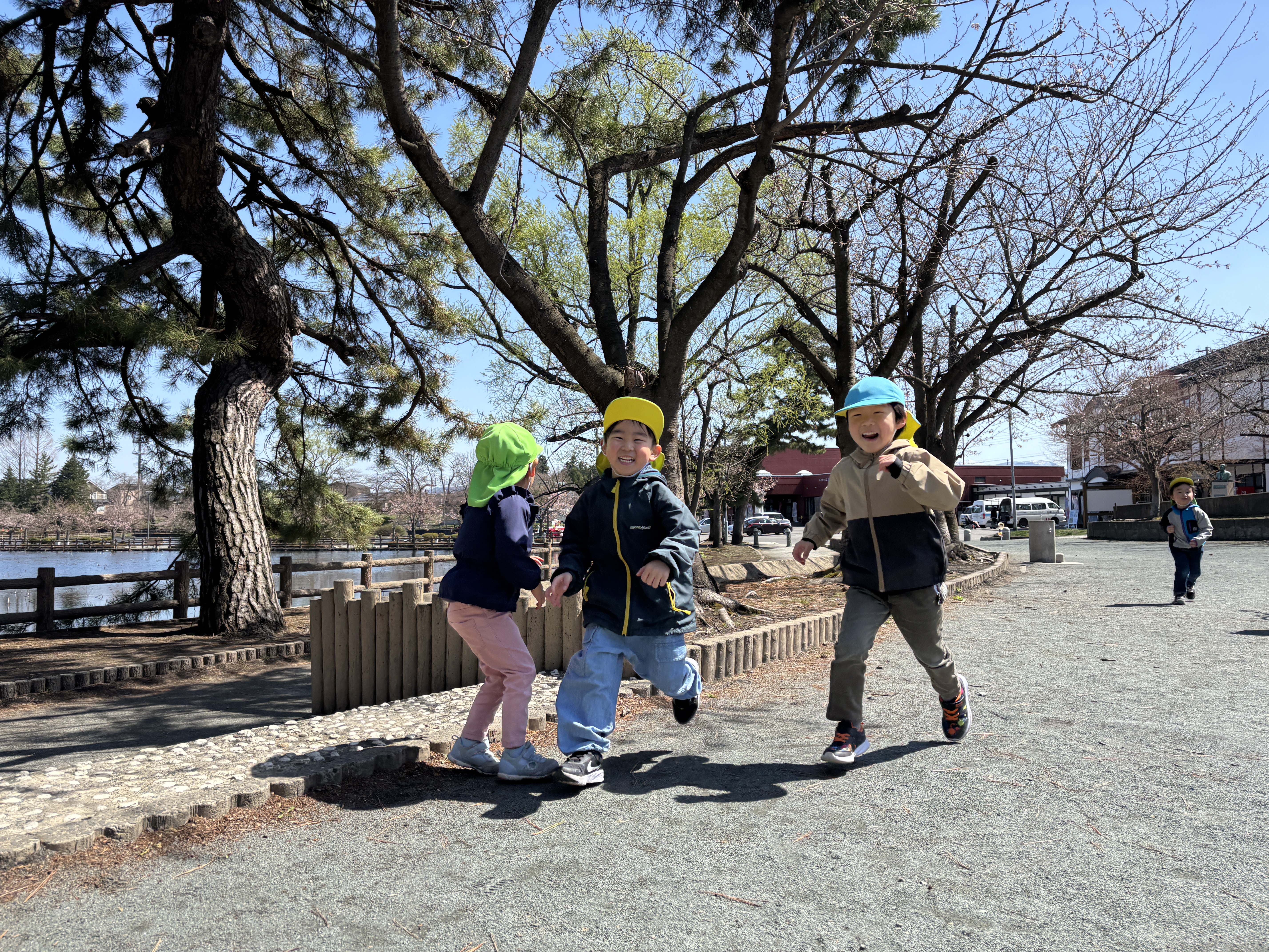 今週の月曜日、そら組、にじ組はお弁当を持ってバスに乗って猿賀神社へ行ってきました。当日は天気も良く桜はまだ少ししか咲いていなかったものの、絶好のお散歩日和でした。みんなで食べたお弁当もとてもおいしかったです。